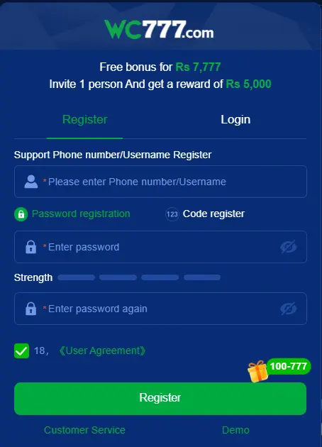 Downloading and registering on WC777 Game is easy, but you should be cautious about fake links. Since WC777 online earning app is not available on the Google Play Store, users must download it from the official website or trusted sources only.
